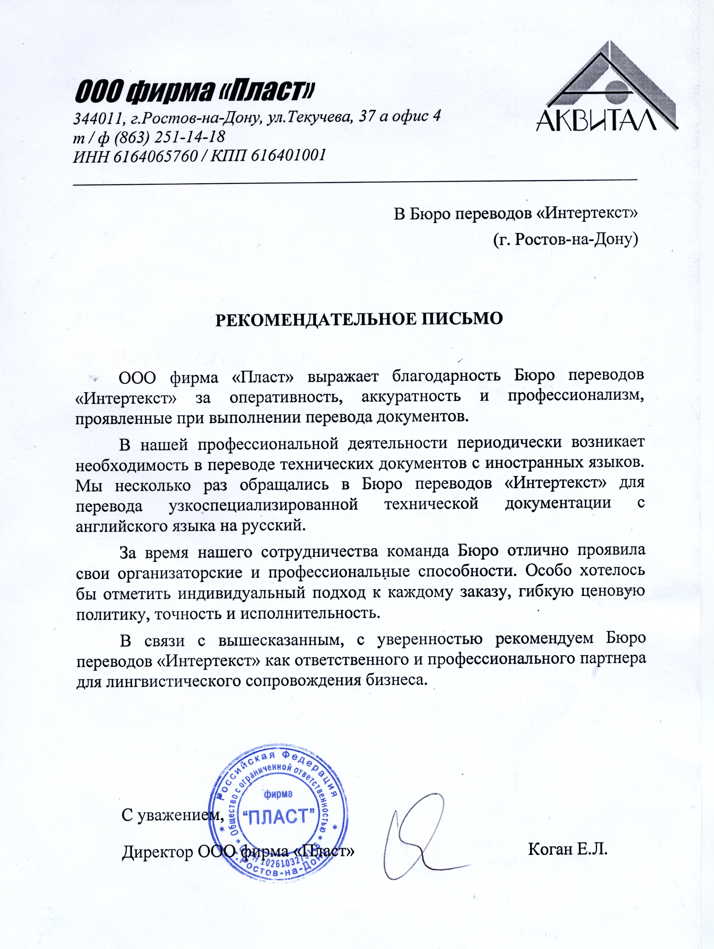 ООО фирма "Пласт" Екатерина Рековски,